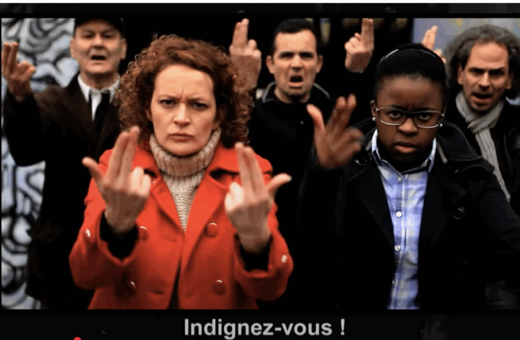 Clip « Indignez-vous ! en langue des signes réalisé par des artistes et réalisateurs sourds sur le titre « Indignez-vous ! » du groupe HK et les Saltimbanks En hommage à Stéphane HESSEL et à son livre « Indignez-vous »